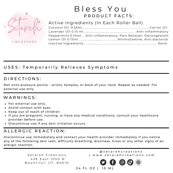 me, I'm passionate about sharing these wellness solutions with others.Click on the names to see the labels up close ![]() Ingredients: Lavender, Lemon, Peppermint, Coconut Oil ![]() Ingredients: Ylang Ylang, Copaiba, Melissa, Black Pepper, Coconut Oil ![]() Ingredients: Lavender, marjoram, ylang ylang, sandalwood, vanilla, R. Chamomile, Coconut Oil ![]() Ingredients: Peppermint, Lemongrass, Frankincense, Lavender, Rosemary, Coconut Oil ![]() Ingredients: Lemongrass, Marjoram, Frankincence Coconut Oil ![]() Ingredients: Frankincence, R. Chamomile, Cedarwood, Coconut Oil ![]() Ingredients: Tea Tree, Lavender, Frankincense Visit this link to Purchase (Shipping included in price listed): https://www.cognitoforms.com/SetarehYorkies/RollerballOrderForm If you are local to me (Bountiful, Utah) and would like to pick up Text me at the phone number below and we can arrange a meeting to get your Products Visit this link to pay with Paypal, Venmo or Cashapp https://www.cognitoforms.com/SetarehYorkies/RollerballOrderFormOtherPaymentOptions *Please add $10.60 for shipping Send the amount for the desired product ![]() Paypal: Setareh Yorkies ![]() ![]() 100%